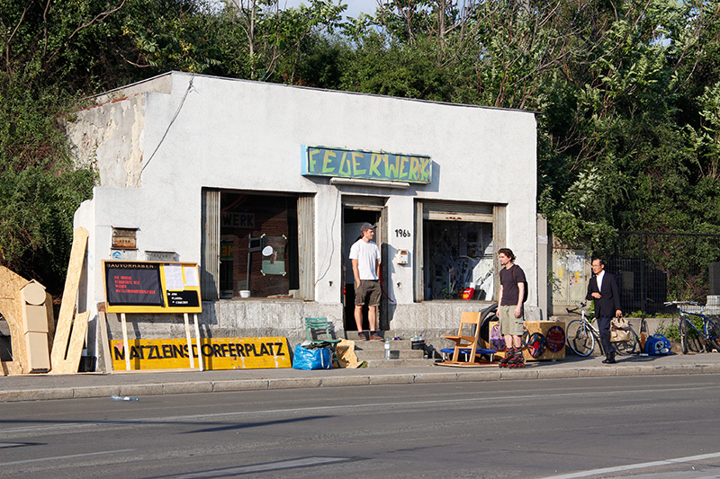 +++ MATZ AB! EXPO 2012 Eine kleine Kläranlage: Während der EXPO zeigen Kollektive, Künstler_innen und Aktivist_innen in den Räumlichkeiten des ehemaligen Feuerwerkladens, auf der Verkehrsinsel und innerhalb des Verkehrsbauwerks unter anderem die raumgreifende Installation "Die große Geschichte des Wiener Matzleinsdorferplatzes" (Tomash Schoiswohl), eine Lesung (mezzanin & mayr präsentieren das daniil charms ballett), Konzerte (plaided, loretto brutto und die knete), Filme und organisieren Spaziergänge. Die Ausstellung wird wachsen. Die Programmierung wird offen sein. Neue Programmpunkte können leicht eingebracht und im Laufe der Ausstellung kommuniziert werden. Dazu servieren wir Kompott, Kaffee und Kuchen. Wir blicken in den Verkehr. In den heißen Junitagen ist zum ersten Mal EXPO am wunderschönen Matzleinsdorferplatz. Wir blicken im Rahmen der EXPO nicht mittels Warenausstellung auf eine national aufgeladene Gewerbe- oder Industrielandschaft, sondern meinen einen Verkehrsblick zu schärfen, mit dem direkt hinter die schönen ortsüblichen Kulissen postfordistischer Arbeits- und Seelenlandschaften geschaut werden kann. +++