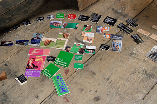 Drei Aspekte aus der Geschichte der Geschichtswerkstätten werden in der Installation diskutiert: Methoden und Formate der Geschichtswerkstätten (1), Geschichtswerkstätten im Kontext von Arbeitslosigkeit (2) und Historisierungs-Konzepte von Geschichtswerkstätten (3).